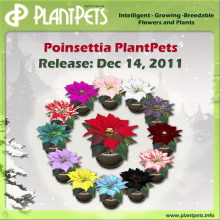 You are invited to the release of the new Poinsettia PlantPets this Wednesday, Dec 14, at 1 pm SLT in the PlantPets Main Store. Our new poinsettias are extremely low in temporary prims and will debut at L$595 with 20% off for members of the group PlantPets Premium for the first 24h of the release.