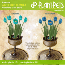 Check out the presentation of PlantPets at the Valentine 2022 Shop & Hop Event at http://maps.secondlife.com/secondlife/Lupine/238/157/53.