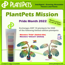 Yesterday PlantPets in collaboration with Krescendo released two limited-edition rainbow-colored Monstera plantpets dedicated to Pride Month 2022. They are available as rewards of a PlantPets mission that exchanges any 10 growing plantpets for a seed of a limited-edition rainbow Monstera. The mission is available at the PlantPets Main Store and the Krescendo store. It costs L$800 and must be completed by the end of June.