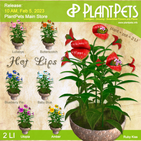 A new PlantPets species Hot Lips is coming this Sunday at 10 am SLT with a 2h launch event at the PlantPets Main Store!